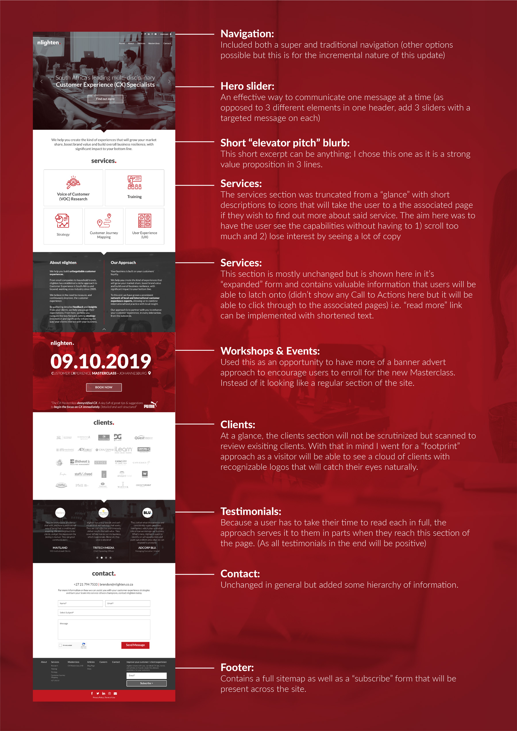 Nlighten tasked me with refreshing the website in it’s entirety. They felt the site at the time was dated and needed to be reviewed in terms of design and information architecture.